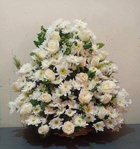 White Sympathy Floor BasketLet your friends or family members know just how much you care, with our beautiful yellow and white sympathy floor basket. Hand-designed arrangement of the freshest yellow roses, yellow cremones, white gladiolas, white carnations, white monte casino and more. Our florist's hand-design each arrangement, so colors, varieties, and containers may vary due to local availability. |
